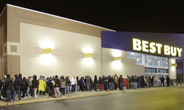 Aunque algunos comercios se mantienen abiertos desde ayer y otros ofrecen descuentos de "viernes negro" hace semanas, los clientes comenzaron a formar filas frente a las entradas el jueves por la noche y viernes de madrugada, con el fin de cazar "la ganga" anual del día después de Acción de Gracias.